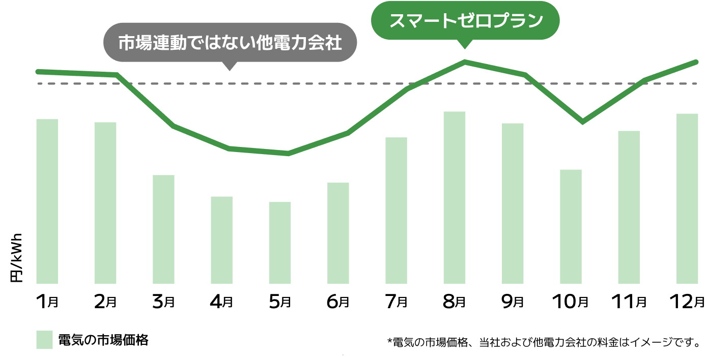 スマートゼロプランは、電気の市場価格に連動する料金体系