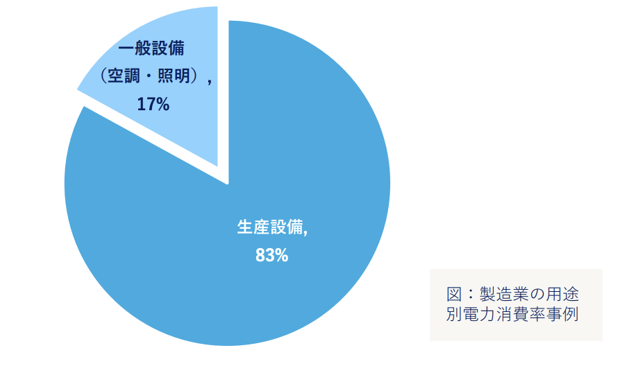 製造業の場合は、電力消費の中で生産設備が占める割合が8割以上を占めることから、生産工程で節電することで大きな効果を上げることができます。